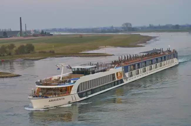 depuis la capitale néerlandaise Amsterdam, que les paquebots atteignent grâce au canal de la mer du Nord qui relie le lac Ij.